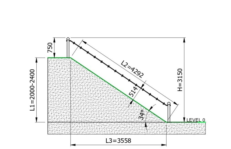 - Böschungshöhe (L1): 2400 mm