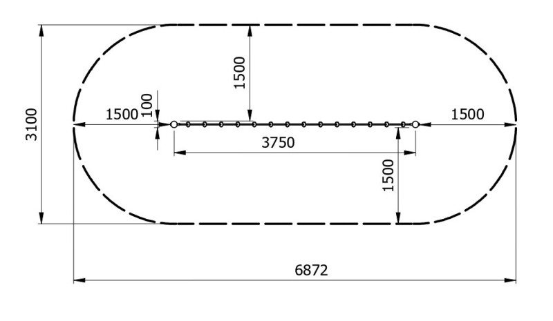 - Sicherheitszone (LxB): 6,87 x 3,1 m